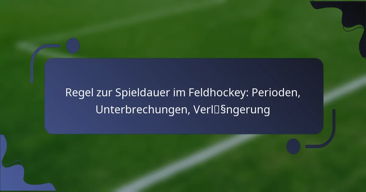 Ein Feldhockeyspiel ist in verschiedene Perioden unterteilt, die jeweils feste Dauer und Pausen haben, die sowohl für Spieler als auch für Zuschauer wichtig sind. Spielunterbrechungen können aus verschiedenen Gründen auftreten, was die Gesamtdauer und den Fluss des Spiels beeinflusst. In Fällen, in denen der Punktestand am Ende der regulären Spielzeit unentschieden ist, kommen die Regeln für die Verlängerung zur Anwendung, die oft zusätzliche Perioden zur Bestimmung eines Siegers beinhalten.