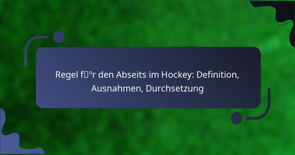 Die Abseitsregel im Grasshockey hat spezifische Ausnahmen, die das Spiel beeinflussen können. Das Verständnis dieser Ausnahmen ist entscheidend für Spieler und Trainer, um das Spiel effektiv zu navigieren und unnötige Strafen zu vermeiden.